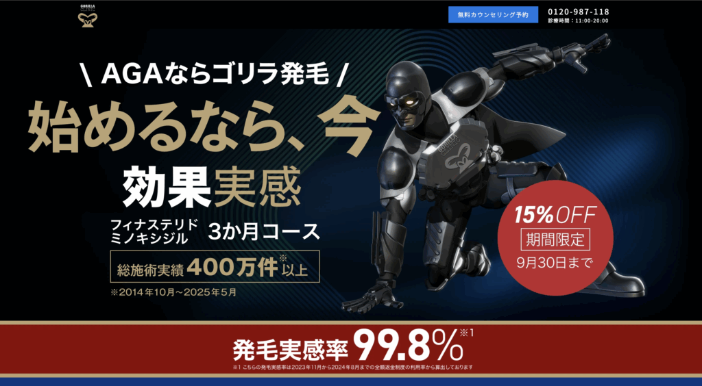 ゴリラクリニック | 81,600円 | 163,200円 | 診察料:無料 血液検査:無料 |